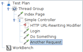 test plan using URL rewriting. Note that the URL Re-writing modifier is added to the SimpleController,