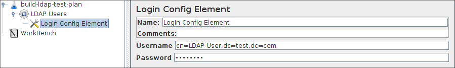 Then, select this new element to view its Control Panel. Like most JMeter elements, the Login Config Element's Control Panel has a name
