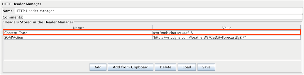 Next, select "HTTP Header Manager" and update "SOAPAction" header to match your webservice.
