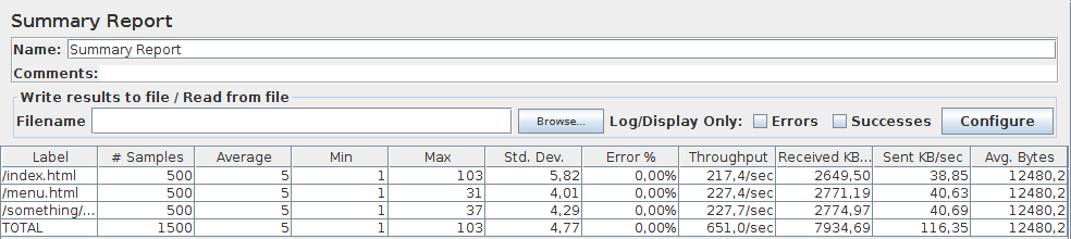 Before you start the test, add a Summary Report element and select it. As the test runs, the statistics will change